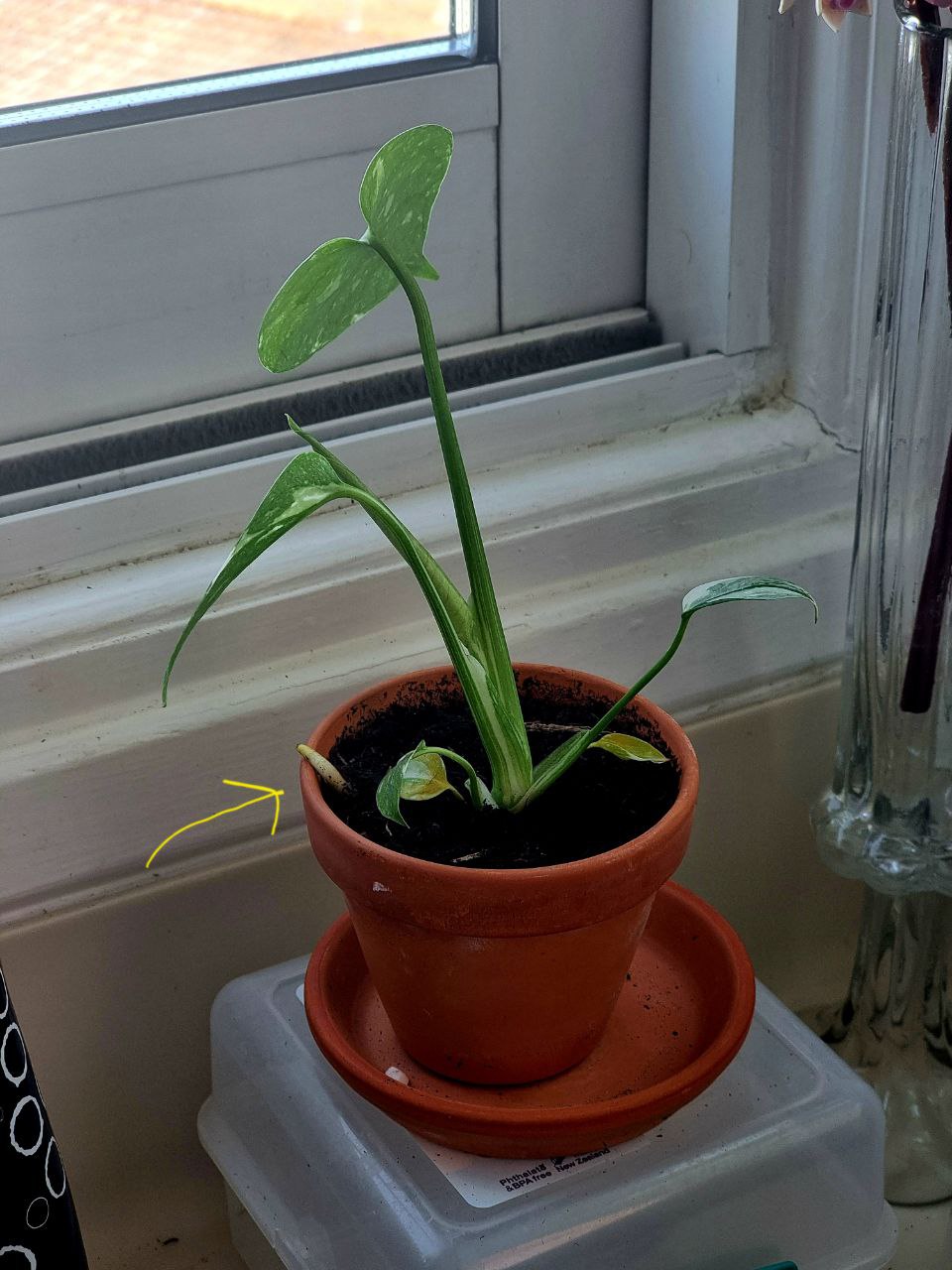 Подскажите пожалуйста, месяц назад пересадили baby монстеру с запасом 1 см, с тех пор выпустила новый листик, выглядит хорошо, но прямо на краю горшка выпустила корень(?) Значит ли это что ей мало места и нужно опять пересаживать?