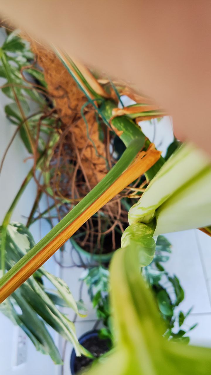 Вопрос к знатокам. Монстера, большая и взрослая, выдала последний лист в 2 раза меньше, чем обычно (ничего не предвещало), а там, где по идее должен быть следующий, видна вот такая фиговина (новый лист выглядит и прощупывается не так). Это что, она цвести собралась, что ли??? Или что это?🙈