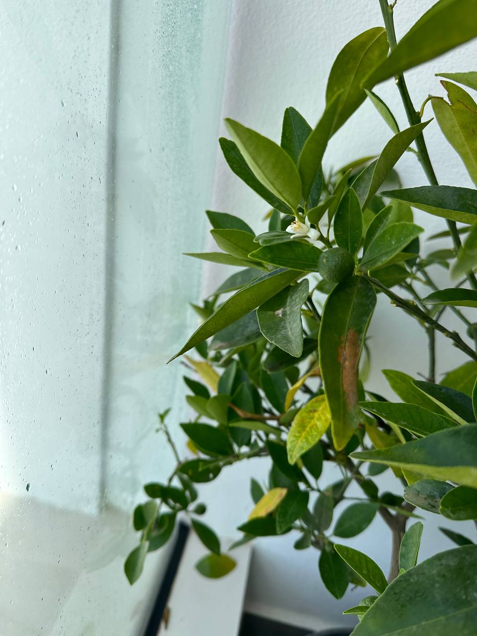 Вот это жара на кумквате или что? Он обработан, весь куст в порядке, но со стороны солнца роняет листья и вот такое выдает((