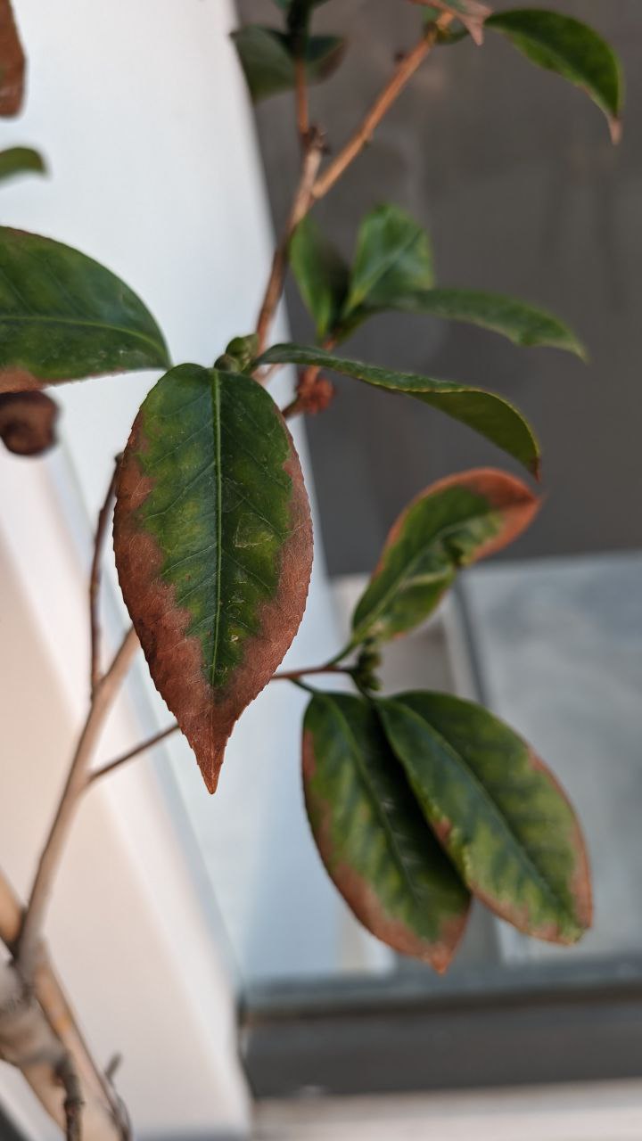 А есть тут знатоки камелий? Листья ржавеют от края, потом отваливаются, уже дерево полулысое. На форумах нашла что-то про горшок, что нужно пересадить в меньший по объему (?), но она у меня так растет уже 8 месяцев (1 раз цвела) и началось это с приходом жары..