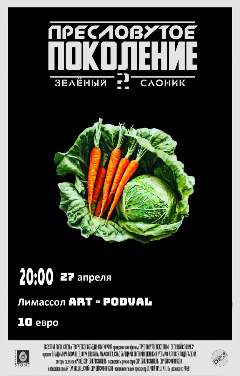 Вторая часть культовой картины - "ПРЕСЛОВУТОЕ ПОКОЛЕНИЕ: ЗЕЛЁНЫЙ СЛОНИК 2" будет показана в камерном-кинотеатре Art-Podval в Лимассоле.