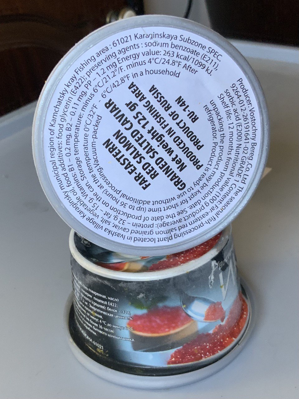 Последние 40 банок икры камчатской нерки, малосоленая, в глубокой заморозке (срок годности закончился 1 августа 2022, но эта партия с завода уже отгружались замороженной по правилам хранения: до -6 ), по прилёту на Кипр в сентябре 2021сразу была помещена в морозилку -24 и до сих пор лежит там... Хотел сохранить этот урожай для себя, но появилась возможность привезти новую партию, поэтому остатки распродаю по 25 евро за банку. Правила покупки: