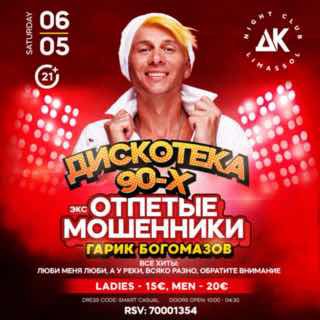 💃🏽Дискотека 90-х с экс участником группы Отпетые Мошенники, Гариком Богомазовым уже 6 мая!