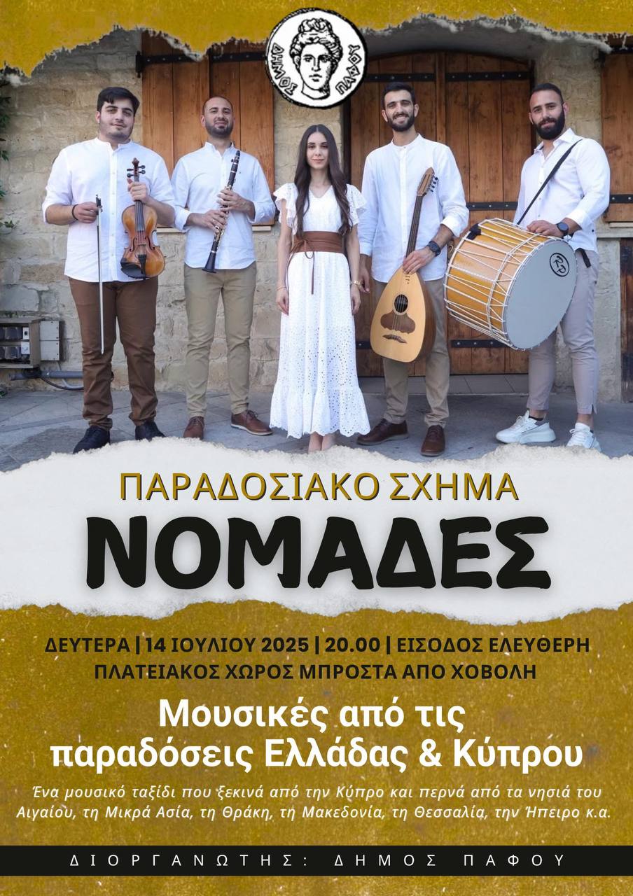 Это музыкальная группа с Кипра, которая приносит на сцену магию традиционной музыки с кочевым характером, сочетая звуки со всей Греции и Кипра.